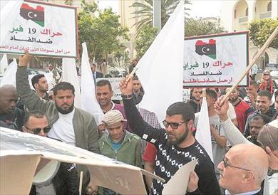 وذكرت وكالة الأنباء الليبية أن حراك «19 فبراير» نظم وقفة احتجاجية لمطالبة الساسة والمسئولين فى غرب البلاد بالرحيل، وردد المحتجون شعارات مناهضة، كما رددوا شعرات تؤكد رفضهم لتردى الأوضاع المعيشية.