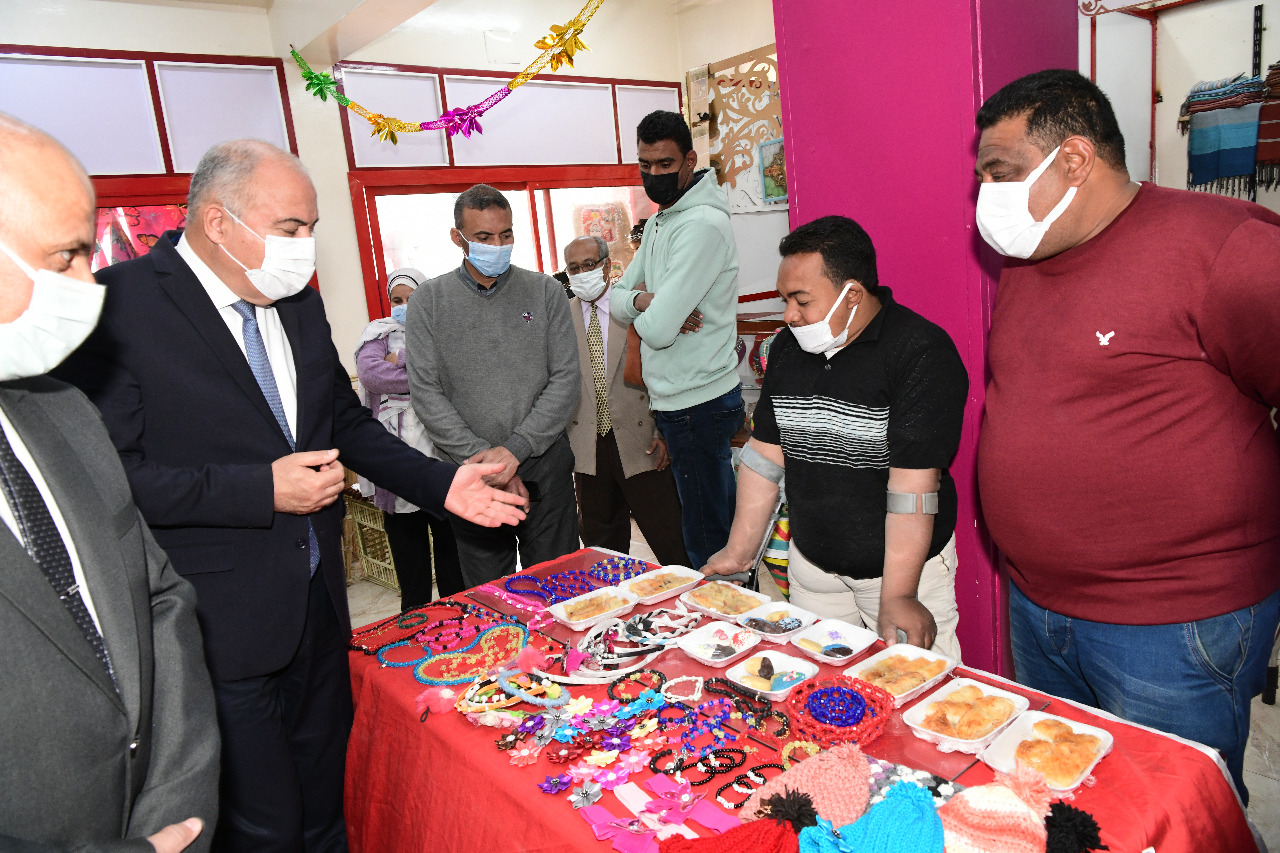 تفقد محافظ قنا المنتجات المعروضة ( الفركة - الفخار - أعمال خشبية - النول - الكليم - حقائب جلدية وكوروشية - مفروشات لحافات - اكسسوارات - مأكولات وغيرها).