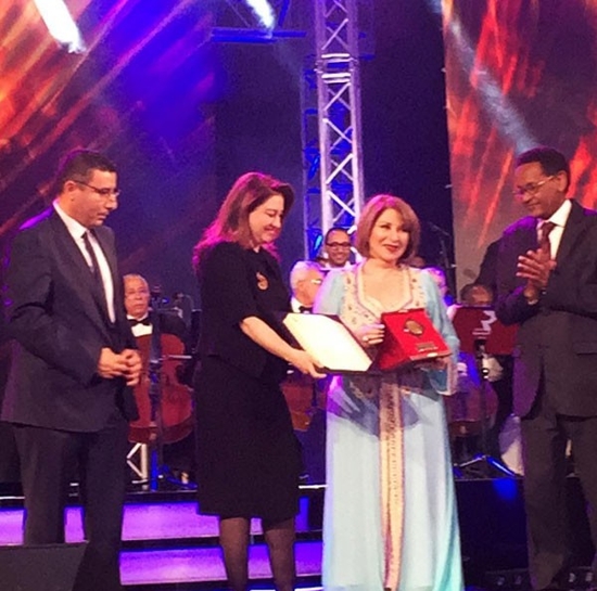 مي نور الشريف استلمت درع تكريم والدها في حفل افتتاح مهرجان الإذاعة والتليفزيون العربي بدورته الـ19 بتونس وقد كانت بصحبة والدتها الفنانة بوسي.