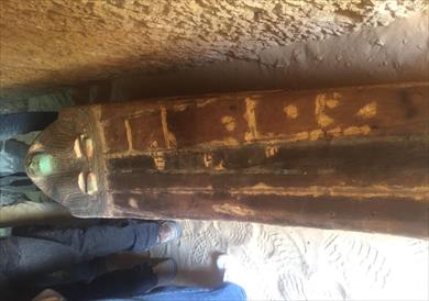 وأشار إلى أنها توابيت ملونة بألوان زاهية ومزخرفة بزخارف متنوعة، يحتوي بعضها على شريط طولي بالكتابة الهيروغليفية يتوسط غطاء بعض تلك التوابيت، كما تم العثور على العديد من أوجه الأقنعة الخشبية والطينية الملونة.