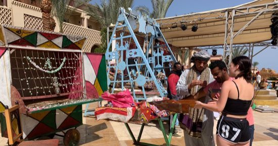وتم إعداد مولد شعبي للسائحين من نزلاء الفنادق السياحية من المصريين والأجانب من مختلف الجنسيات الأجنبية، والذي ضم ألعاب السيرك والمراجيح ومسرح العرائس وضرب الودع وألعاب المولد، وفقرات فنية وفلكور شعبي ورقص على أنغام المزمار البلدي وسط فرحة الجميع وتبادل التهاني والتبريكات بمناسبة عيد الفطر المبارك والتقاط الصور التذكارية في سعادة غامرة.