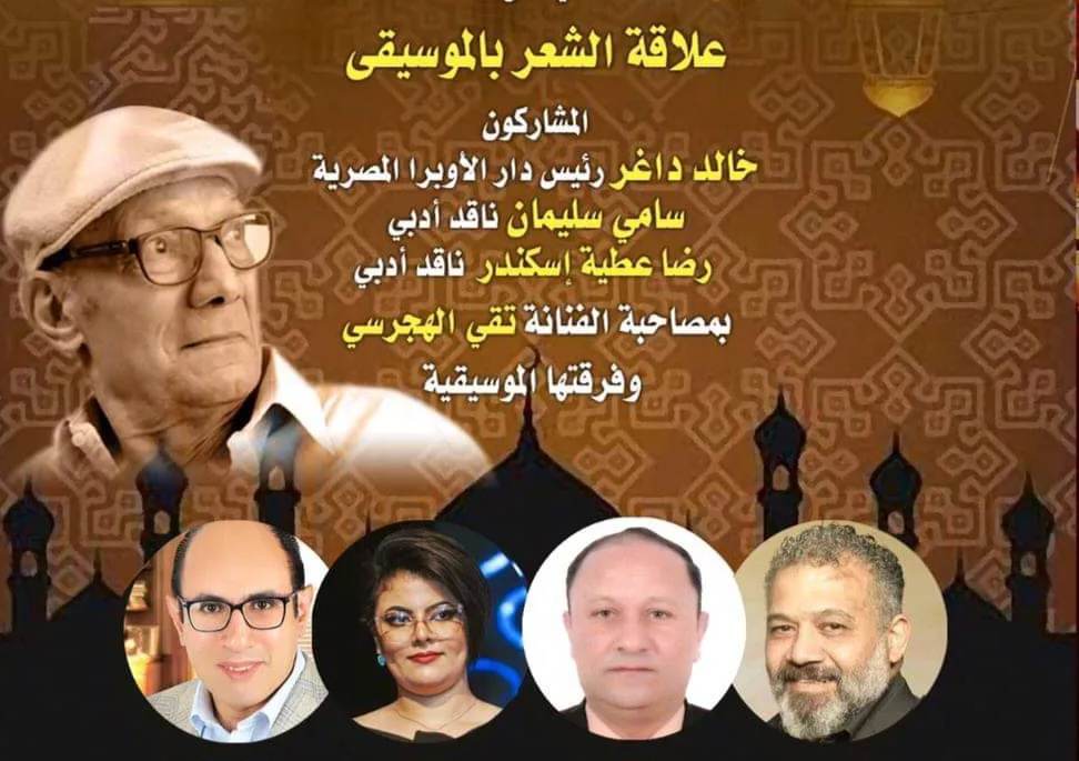 يتناول النقاش في الصالون حول علاقة الشعر بالموسيقي، ويتخلله فقرات غنائية تقدمها الفنانة تقى الهجرسي وفرقتها الموسيقية.