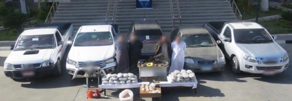 ضبط شخصين حال استقلالهما سيارتين بدائرة مركز شرطة فايد. وبحوزتهما 100 لفافة لمخدر الهيدرو وزنت 100 كيلو، و70 طربة لمخدر الحشيش وزنت 7 كيلو، وكمية لمخدر الآيس "الشابو"، وبندقية آليه، و9 خزينة متنوعة، وطبنجة، و2 بندقية خرطوش، وطلقات مختلفة الأعيرة، ومبلغ مالي، و3 هواتف محمول.