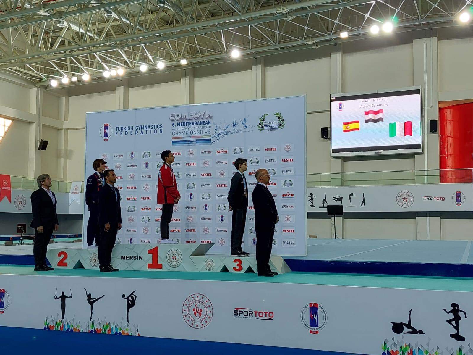 وحصد لاعبو منتخب مصر للجمباز الفني رجال في بطولة البحر المتوسط ناشئين 4 ميداليات ذهبية وفضيتين وبرونزية وجاءت النتائج التالية اللاعب يحيى زكريا المركز الاول والميدالية الذهبية في نهائيات جهاز العقلة والميدالية الفضية في نهائيات جهاز المتوازي اللاعب عبدالرحمن محمد رضا المركز الثاني والميدالية الفضية في نهائيات جهاز حصان الحلق اللاعب مصطفى وليد المركز الثالث والميدالية البرونزية في بطولة نهائيات جهاز الحركات الأرضية وتنافس فى منافسات الجمباز الفني رجال عدد 9 دول هي مصر وتركيا وايطاليا والجزائر واسبانيا وفرنسا والاردن والبرتغال والمغرب.