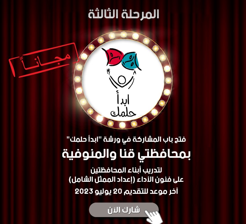 من جهته، قال المخرج أحمد طه المدير الفني للمشروع إن ورشة ابدأ حلمك بمحافظتي قنا والمنوفية سيقوم بالتدريب بها نخبة من فناني المسرح بكلتا المحافظتين سيتم الإعلان عنهم لاحقا، وأن التدريبات سيتم البدء بها فور إجراء الاختبارات للمتقدمين وتحديد المقبولين، حيث من المخطط أن تستمر 6 أشهر، على أن تكون حفلات التخرج فبراير 2024.