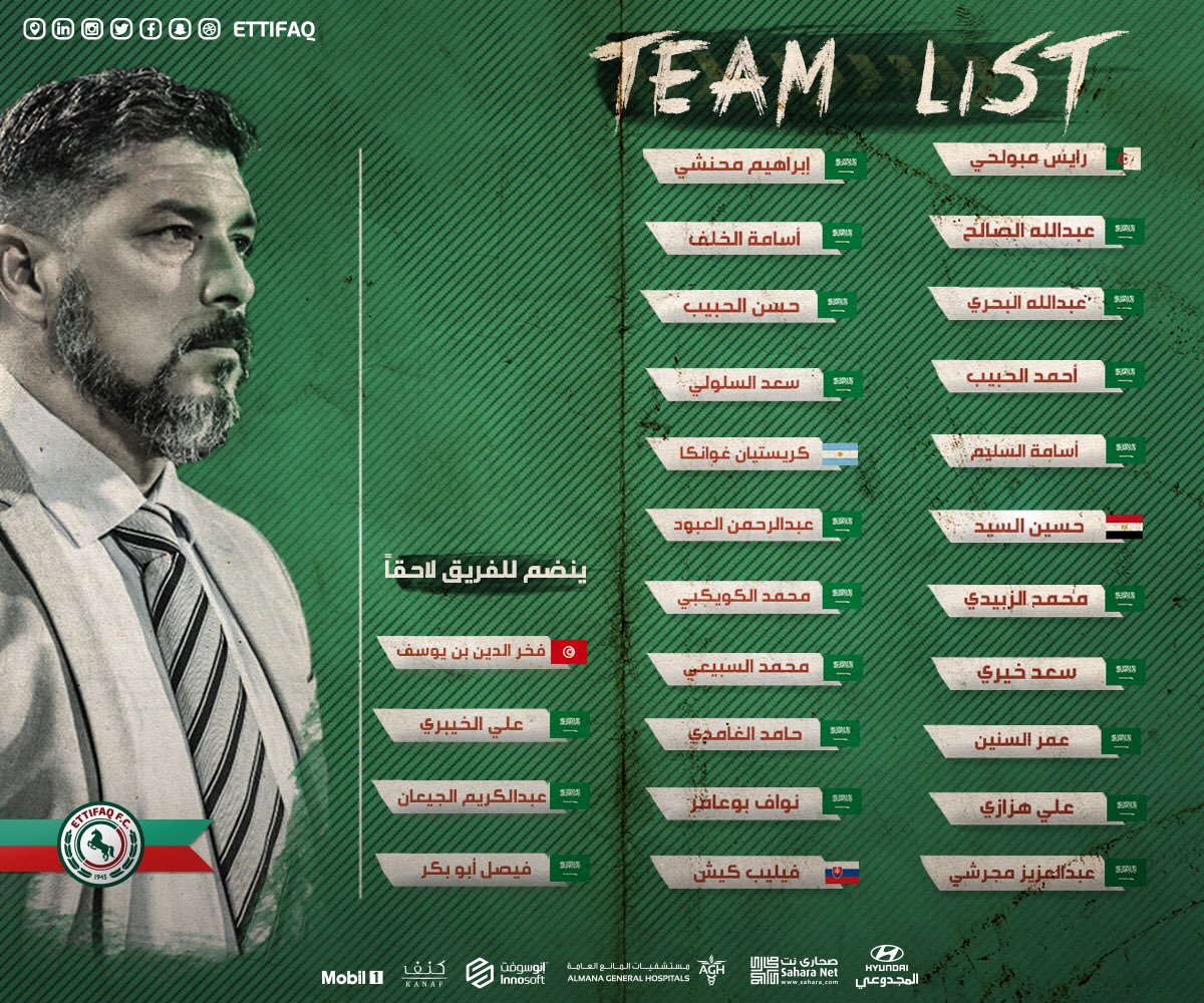 ونشر الإتفاق قائمة الفريق الجديدة، والتي تواجد فيها اللاعب المصري، والذي من المقرر أن يخوض مرانه الأول اليوم الأربعاء، على هامش معسكر الفريق السعودي المقام حاليا فى هولندا، ضمن الإستعداد للموسم الجديد.