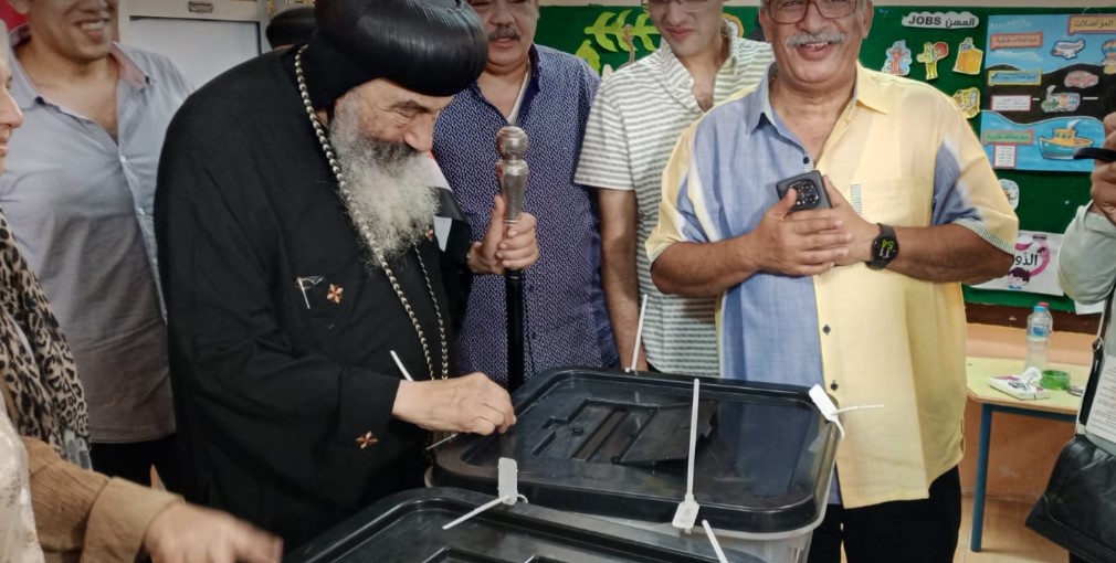 وكان الأنبا تادرس قد حرص على رفع علم مصر أثناء الإدلاء بصوته، في مشهد يعكس حالة من الوحدة الوطنية.