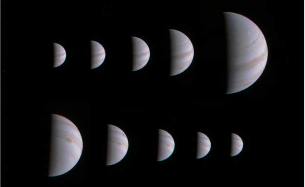 مرحلة الوصول والمغادرة: صور جونو تبتعد كل واحدة عن الأخرى بنحو 10 ساعات كلما اقترب المسبار أو ابتعد