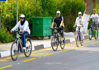 وتابعت الوزارة خطوات تفعيل مشروع استعانة شباب الجامعات بالدراجات ضمن أنشطة حياتهم اليومية كوسيلة من وسائل التنقل الأساسية بالفيوم وتطبق التجربة، تحت شعار "الدراجات وسيلة مواصلات" في إطار مشروع استدامة النقل الذي يتم تنفيذه بالتعاون مع البرنامج الإنمائي للأمم المتحدة.