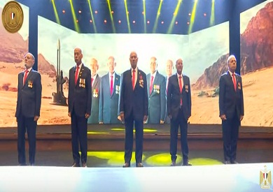 وأدى الرئيس، أداء التحية العسكرية لخمسة من أبطال حرب أكتوبر، قائلا لهم: "لنا عظيم الشرف إننا نشوفكم والناس كلها تشوف الرجال أو من تبقى من الرجال.. اللي قدموا لبلدنا الكرامة والعزة والنصر والشرف دون مقابل".