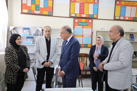 رافق المحافظ، الدكتور على عبد السلام وكيل وزارة التربية والتعليم بالمنيا، والمهندس محيي عبد الرحمن مدير فرع هيئة الأبنية التعليمية بالمنيا، والدكتور بهاء حسن مدير إدارة المنيا التعليمية، الدكتورة أمل عليوة مدير فرع مكتبة مصر العامة.