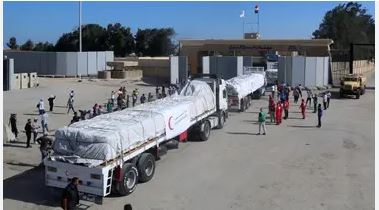 أفاد مراسل «القاهرة الإخبارية»، بوجود أكثر من 50 شاحنة مساعدات، و7 شاحنات وقود أمام معبر رفح؛ استعدادًا لدخول قطاع غزة.