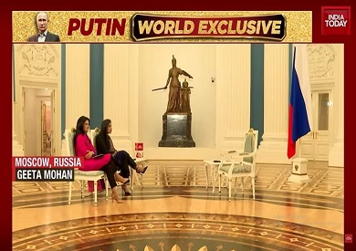 وأجرى الرئيس الروسي فلاديمير بوتين مقابلة حصرية مع صحفيتي "إنديا توداي" و "آج تاك"، أنجانا أوم كاشياب وغيتا موهان، وهي الأولى للتلفزيون الهندي منذ ما يقرب من عقدين، حسبما جاء في إعلان القناة.