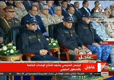 ظهر الرئيس عبدالفتاح السيسي، خلال حضوره مراسم افتتاح أعمال التطوير بميناء سفاجا وعدد من المشروعات التنموية الأخرى، مرتديًا زيًا عسكريًا.