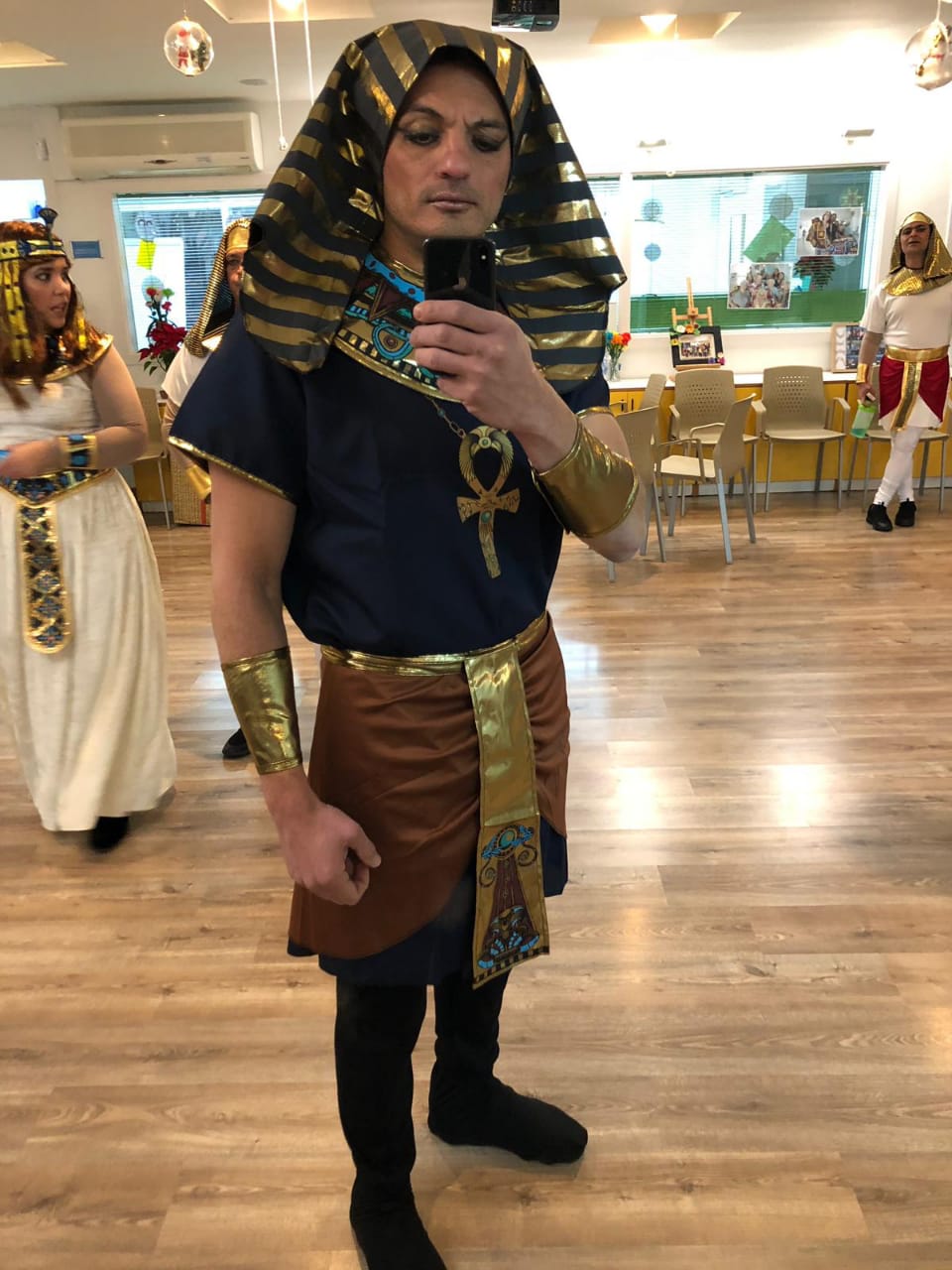 بالزي الفرعونى، وعلى عربة فرعونية، مثل الفنان محمد على السينما المصرية، بالمشاركة فى أكبر الكرنفالات الفنية التى تشهدها العاصمة الإسبانية برشلونة حاليًا.