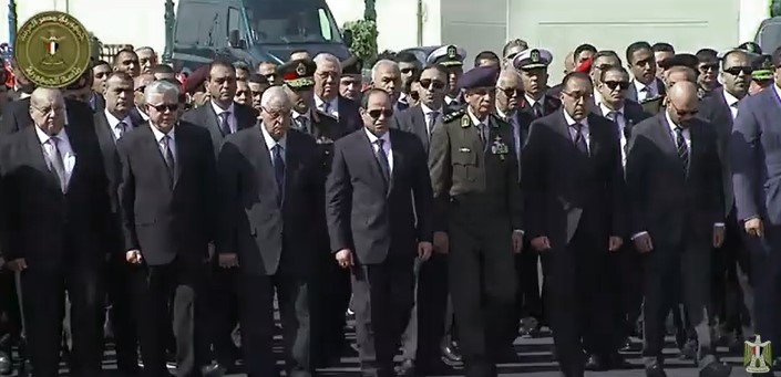 وتقدم الجنازة إلى جوار الرئيس كل من المستشار عدلي منصور، والدكتور مصطفى مدبولي، رئيس مجلس الوزراء، والفريق أول محمد زكى القائد العام للقوات المسلحة وزير الدفاع والإنتاج الحربي، والمستشار حنفي جبالي، رئيس مجلس النواب، والمستشار عبدالوهاب عبدالرازق، رئيس مجلس الشيوخ.