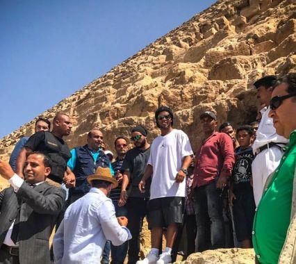 استقبلت منطقة أهرامات الجيزة منذ قليل نجم كرة القدم العالمي البرازيلي رونالدينيو، وذلك بمصاحبة هشام الدميري رئيس هيئة تنشيط السياحة، وتامر وجيه رئيس مجلس إدارة حملة تور اند كيور "Tour and Cure".