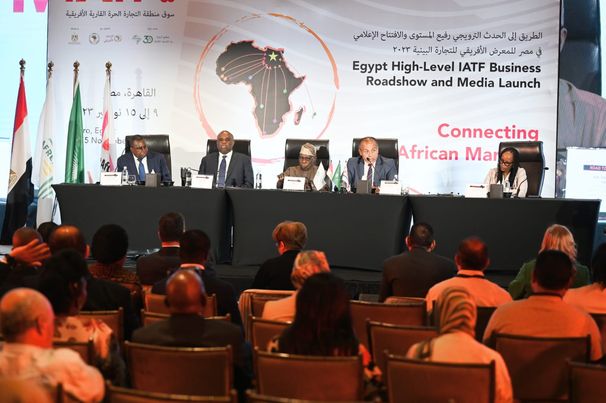 جاء ذلك في سياق كلمة الوزير التي ألقاها نيابةً عنه يحيي الواثق بالله رئيس التمثيل التجاري خلال مشاركته بفعالية تدشين وإطلاق النسخة الثالثة من معرض التجارة البينية الأفريقية IATF الذي تستضيفه مصر للمرة الثانية خلال الفترة من ٩-١٥ نوفمبر ٢٠٢٣، بحضور أولوسيجون أوباسانجو رئيس المجلس الاستشاري للمعرض الأفريقي للتجارة البينية 2023 والرئيس الأسبق لدولة نيجيريا، وبنيدكت اوراما رئيس البنك الأفريقي للتصدير والاستيراد "افريكسيم بنك" والبرت موتشانجا مفوض الاتحاد الأفريقي للتنمية الاقتصادية والتجارة والسياحة والصناعة والمعادن ووامكيلي ميني الامين العام لاتفاقية التجارة الحرة القارية الأفريقية AFCFTA.