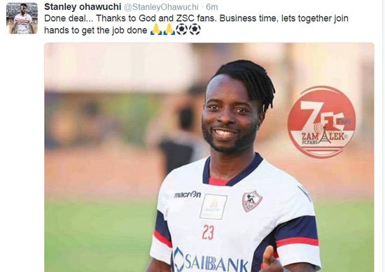بعد إنضمامه رسميا إلي صفوف الزمالك ، احتفل المهاجم النيجيري ستانلي أوهاوتشى بإنتقاله من وادي دجلة إلي القلعة البيضاء.