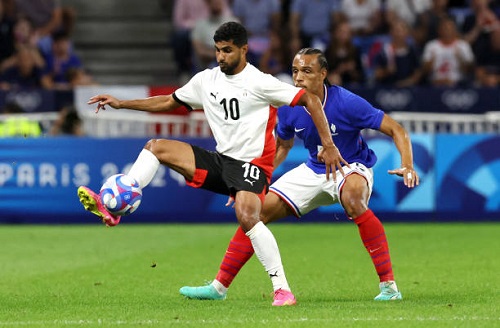 رد المنتخب الفرنسي بفرصة خطيرة في الدقيقة الخامسة عبر تصويبة قوية من أدريان تروفيرت لاعب منتخب فرنسا من يسار منطقة الجزاء تألق حمزة علاء في التصدي لها وأبعدها حسام عبد المجيد.