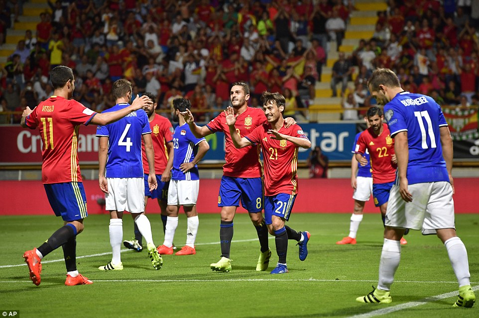اجهزت منتخب اسبانيا لكرة القدم بقيادة مدربها الجديد خولن لوبيتيدجي على ضيفتها ليشتنشتاين 8-صفر الاثنين في ليون في الجولة الاولى من منافسات المجموعة السابعة ضمن تصفيات اوروبا المؤهلة الى نهائيات مونديال 2018 في روسيا.