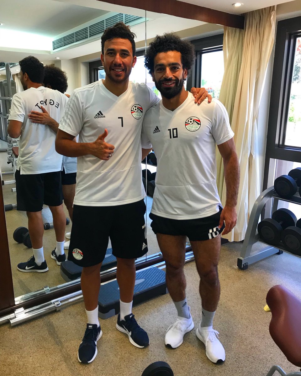 نشر محمود حسن تريزيجيه لاعب منتخب مصر وقاسم باشا التركي، صورة له مع نجم ليفربول محمد صلاح عبر حسابه الشخصي على موقع "تويتر"، وذلك خلال استعدادات "الفراعنة" لمواجهة النيجر ضمن مباريات الجولة الثانية لتصفيات كأس أمم إفريقيا بالكاميرون 2019.