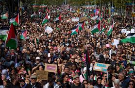 وجاءت هذه المسيرات ضمن مسيرات أخرى نُظمت، اليوم الأحد، في مدن أوروبية، بمناسبة الذكرى الثانية لهجوم حركة حماس على إسرائيل في 7 أكتوبر 2023، وهو الهجوم الذي أشعل حرب غزة.