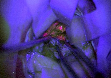 واستخدم الجراحون مجهرا للمساعدة في رؤية الأنسجة المضاءة أثناء إزالة الأورام من المخ.