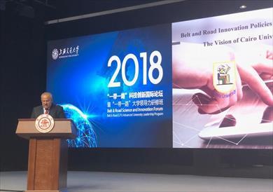 وفي الجلسة الافتتاحية، قدم الدكتور محمد عثمان الخشت رئيس جامعة القاهرة، عرضا لرؤية كاملة عن تطوير سياسات الابتكار في العلوم والتكنولوجية ومبادرة الحزام والطريق.