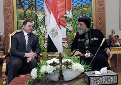 زار اللواء محمود توفيق وزير الداخلية صباح اليوم ، البابا تواضرس الثانى بابا الإسكندرية وبطريرك الكرازة المرقسية، قدم خلالها واجب العزاء فى شهداء الوطن من المصريين الذين صعدت أرواحهم الطاهرة لبارئها عقب عودتهم من دير الأنباء صموئيل بالمنيا بيد الإرهاب الغادر .