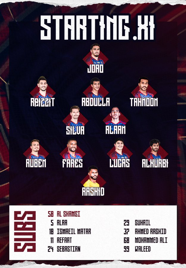 وشهد تشكيل الوحدة الإماراتي تواجد النجم المصري أحمد رفعت على مقاعد البدلاء، وكان رفعت قد انتقل للوحدة في فترة الانتقالات الصيفية الماضية وقدم مستويات رائعة للغاية منذ انضمامه للفريق.