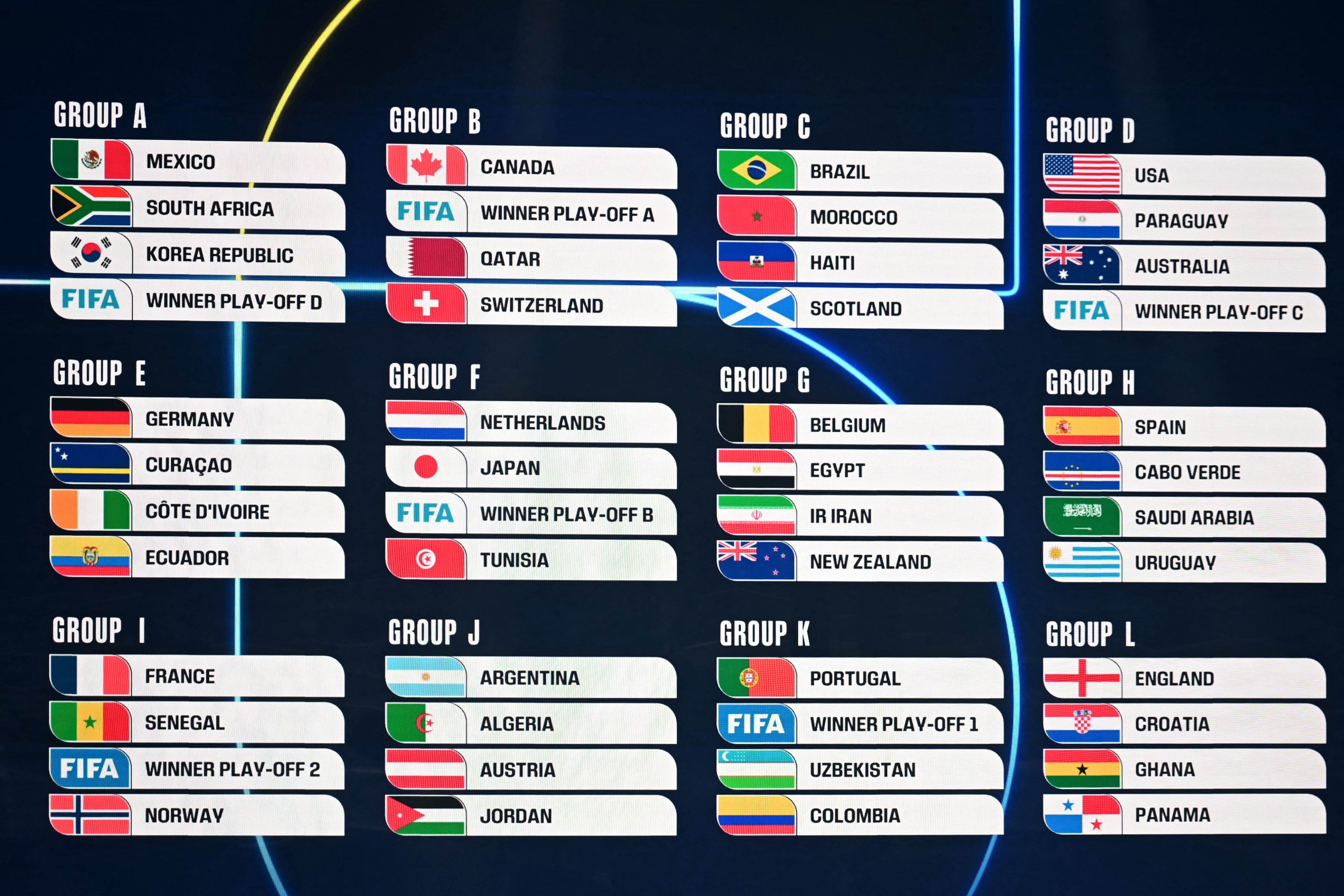 الوعاء 4: الأردن، كاب فيردي، غانا، كوراساو، هايتي، نيوزيلندا، المنتخبات الأربعة (أ، ب، ج، د) المتأهلة من الملحق الأوروبي، المنتخبان الاثنان (أ، ب) المتأهلان من الملحق العالمي.