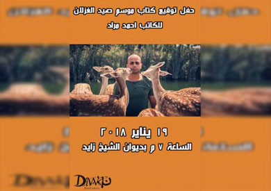 تنظم مكتبة «ديوان» حفل توقيع ومناقشة رواية «موسم صيد الغزلان»، للكاتب والروائي أحمد مراد، والصادرة عن «دار الشروق»، يوم الجمعة الموافق 19 يناير الجاري، في تمام الساعة 7 مساء، وذلك في فرع المكتبة بالشيخ زايد بمدينة 6 أكتوبر.