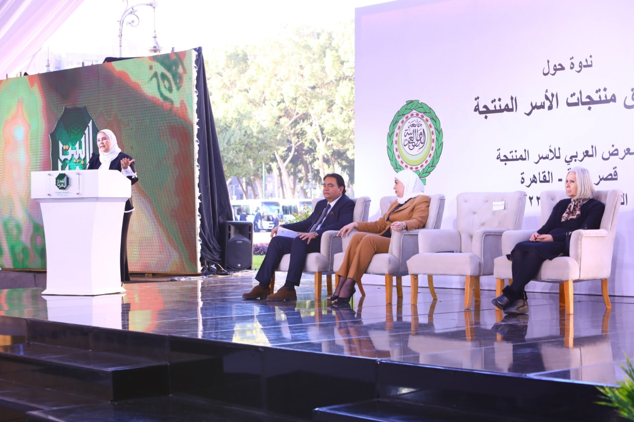 ومن جانبها ، أكدت السفيرة هيفاء أبو غزالة الأمين العام المساعد لجامعة الدول العربية أن افتتاح معرض بيت العرب جاء تأكيدًا لأولويات اهتمام جامعة الدول العربية فى القضاء على الفقر المتعدد الأبعاد ومساندة الأسر المنتجة فى التسويق، مشيرة إلى أهمية تطوير منتجات الأسر المنتجة وبما يتطلب التنسيق بين الأطراف المعنية بما يشكل منظومة متسقة تطرح أفكارًا وأنماطًا مبتكرة لتحقيق استدامة، إضافة إلى تسويق المنتجات بما فيها الأشكال التقليدية والمبتكرة.