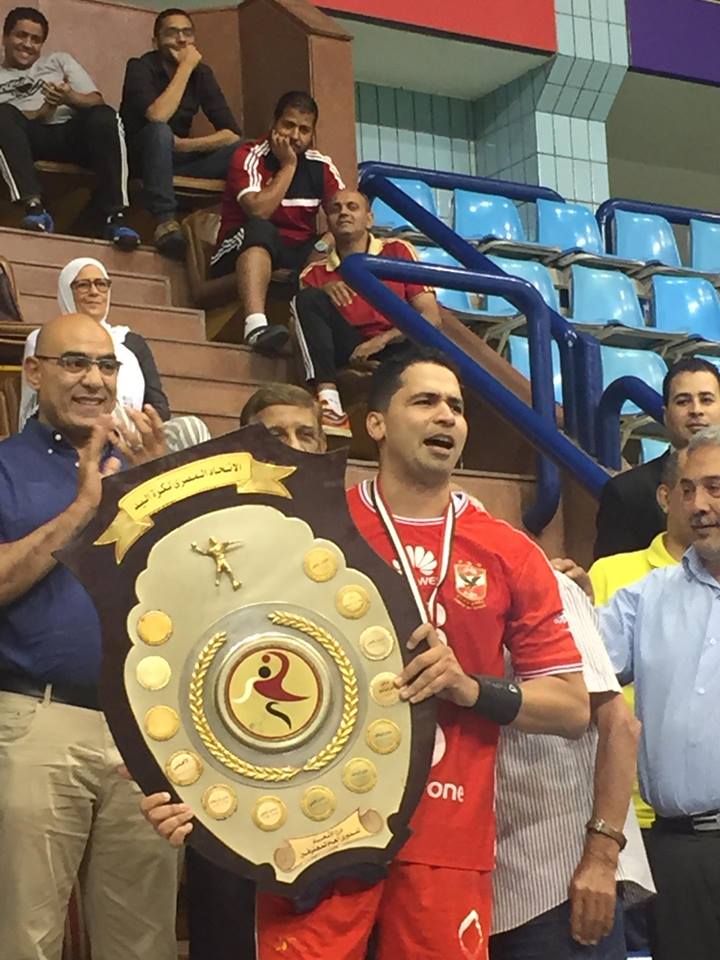 تسلم كريم السعيد قائد الفريق الأول لكرة اليد بالنادي الأهلي، بطولة دوري المحترفين للموسم الحالي 2016 - 2017، من المهندس هشام نصر بعد نهاية مباراته أمام نظيره نادي الزهور بنتيجة 34 - 29.