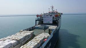 وتحمل السفينة 5 آلاف و55 طنا من المواد الغذائية ومستلزمات الأطفال وأكياس النوم ومساعدات أخرى مقدمة لسكان غزة.