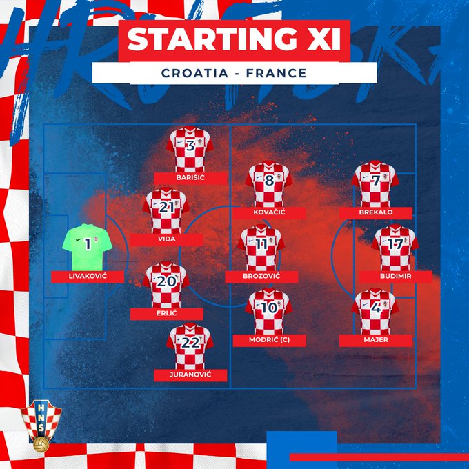 وجاء تشكيل المنتخب الكرواتي على النحو التالي: