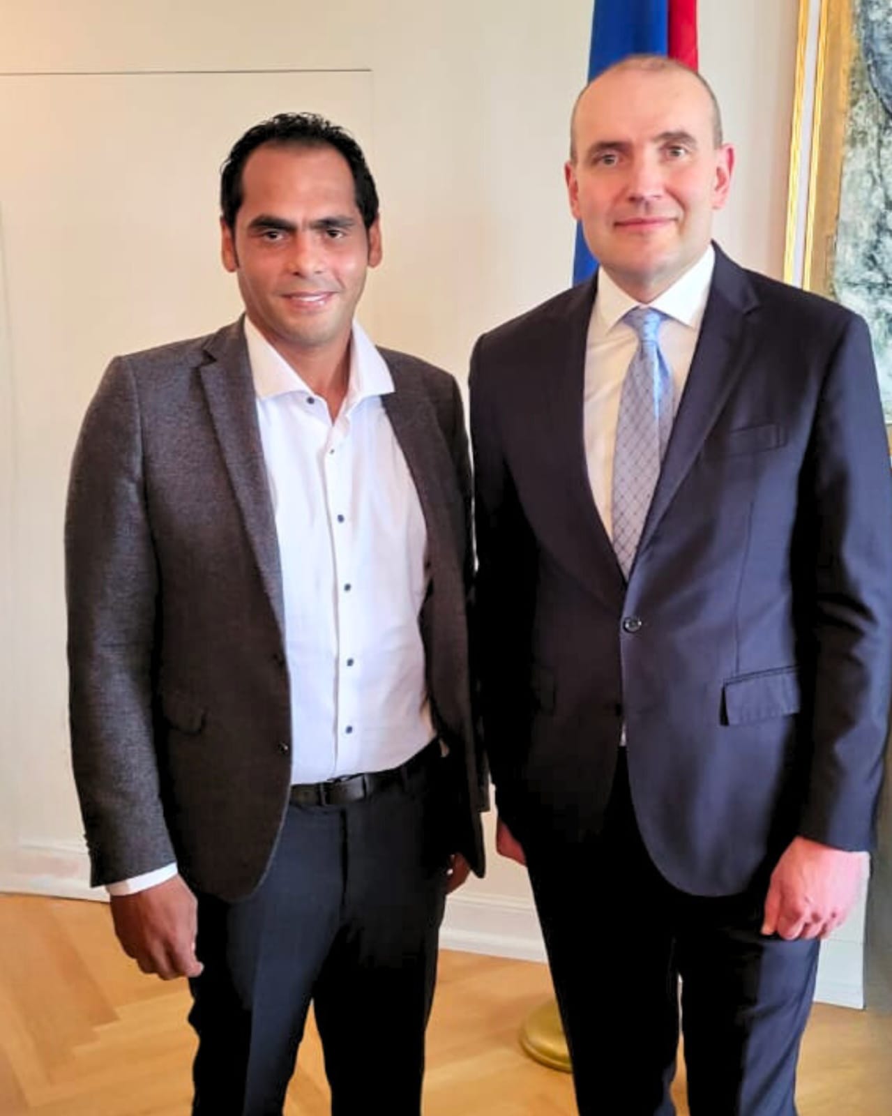 استقبل جودني يوهانسون رئيس دولة أيسلندا، أنور الكموني نجم التنس المصري، خلال فعاليات منتدى روح الانسانية السادس لمدة 3 أيام متواصلة تحت عنوان "إنقاذ العالم من الكوارث".