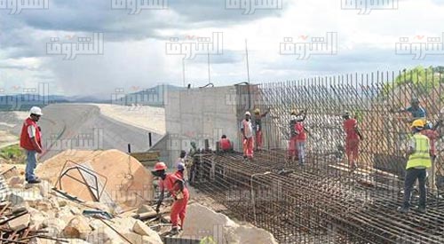 - استمرار عمليات البناء فى موقع السد ليلا ونهارا رغم كثافة الأمطار وصعوبة الطقس