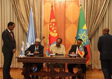 وقع رؤساء إريتريا والصومال ورئيس الوزراء الإثيوبي في العاصمة الاريترية أسمرة، اتفاق تعاون في المجالات الاقتصادي والسياسي والأمني والاجتماعي والثقافية.