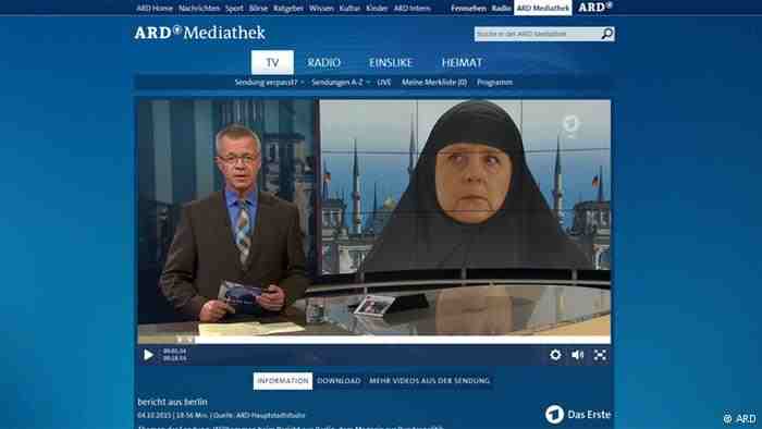 أن تظهر المستشارة الألمانية أنغيلا ميركل وهي ترتدي الحجاب، هو أمر مستحيل في الواقع، إلا أن مشاهدي البرنامج الألماني الشهير "مجلة التلفزيون" الذي يبث من برلين، شاهدوا ذلك، إذ عرضت القناة التلفزيونية الأولى "أيه آر دي"ARD صورة مركبة لميركل، وهي ترتدي عباءة سوداء اللون، ومن ورائها مبنى الرايخستاغ (حيث يعقد البرلمان الألماني "بوندستاغ" جلساته) وعليه مآذن ورمز الهلال.