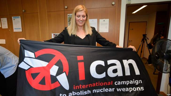 ﺍﻟﺤﻤﻠﺔ ﺍﻟﺪﻭﻟﻴﺔ ﻟﻠﻘﻀﺎﺀ ﻋﻠﻰ ﺍﻷﺳﻠﺤﺔ ﺍﻟﻨﻮﻭﻳﺔ تفوز بجائزة نوبل للسلام