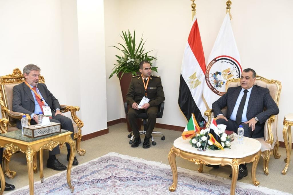 وقام "كونسلفا" بدعوة الوزير "محمد صلاح" والمسئولين بالإنتاج الحربي لزيارة الجناح الخاص بالشركات الإيطالية بمعرض "EDEX 2023" للتعرف عن قرب على أحدث المنتجات التى تقوم هذه الشركات بإنتاجها حيث تشارك بالمعرض عدد (٩) شركات إيطالية تعرض مجموعة متنوعة من المنتجات العسكرية، مشيداً بمعروضات الإنتاج الحربي بالمعرض كما أشاد بحرص الوزارة الدائم لتطوير منتجاتها وإستحداث منتجات جديدة بالاستعانة بالعقول والأيدي العاملة المصرية.