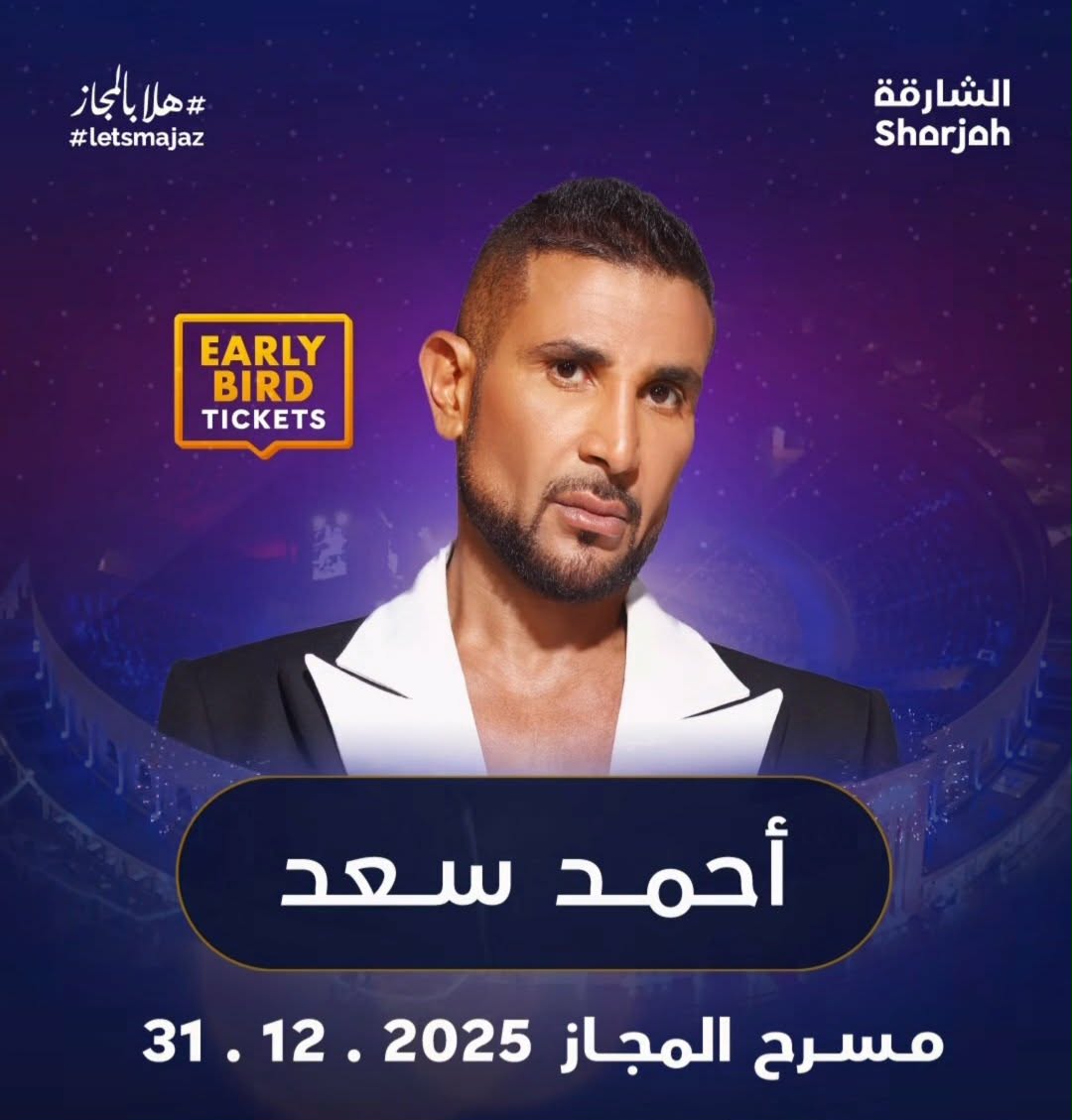 وأعلن أحمد سعد عن الحفل عبر صفحته الرسمية على موقع «إنستجرام»، قائلاً: «هنحتفل مع بعض بالسنة الجديدة في حفلة مسرح المجاز بالشارقة يوم 31 ديسمبر».