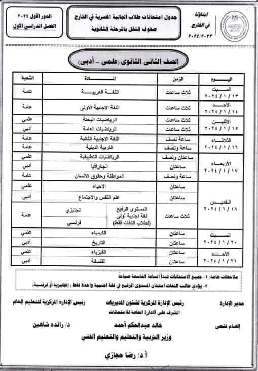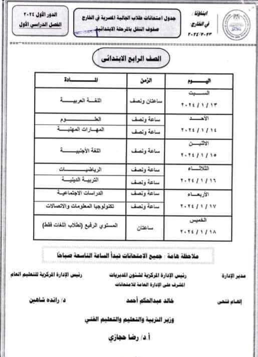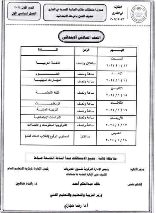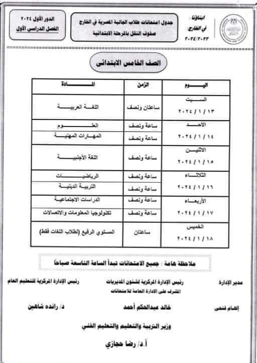 أعلنت وزارة التربية والتعليم، عبر موقعها الرسمي جداول امتحانات الفصل الدراسي الأول للطلاب في الخارج.