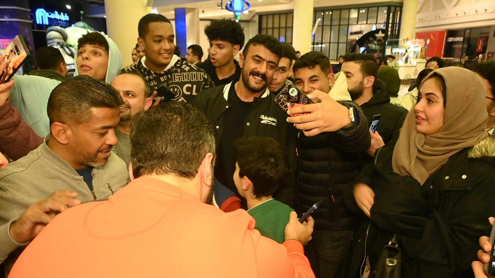 وتفاجأ العوضي بحضور فريق السلة بنادي الزمالك، الذين حضروا لمشاهدة الفيلم، وقاموا بالتقاط صور معه بالكأس.