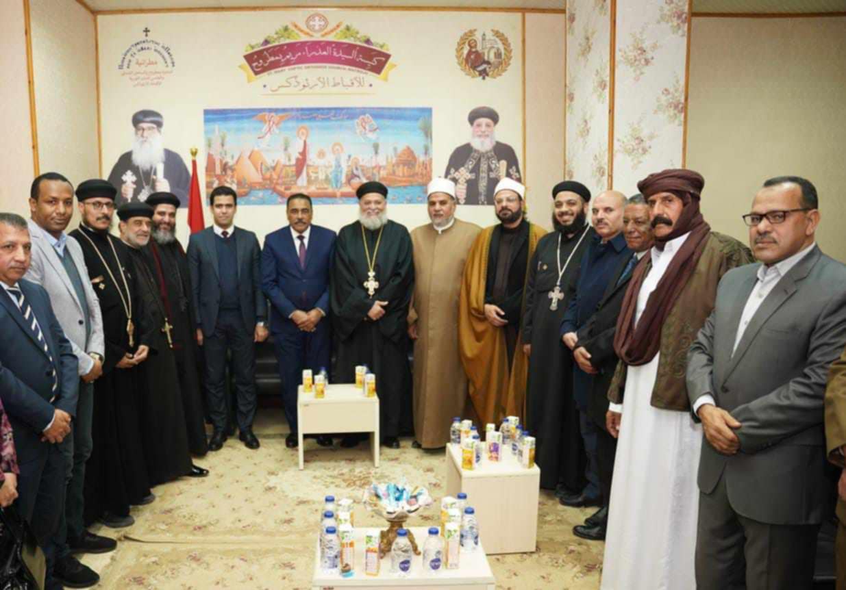وقدم محافظ مطروح التهنئة، معرباً عن تمنياته بعام جديد سعيد على الإخوة الأقباط والشعب، مؤكدا تكاتف وتلاحم ووحدة الشعب، وتآلفه في نسيج وطني واحد على مر التاريخ، وسيظل بوعي أبنائه في رباط ليستكمل مسيرة بناء الوطن والحفاظ عليه ومواجهة كل المحن والتحديات.