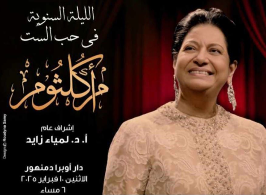 قررت دار الأوبرا المصرية، برئاسة الدكتورة لمياء زايد، إعادة تقديم الليلة السنوية في حب الست أم كلثوم، ضمن سلسلة أرواح في المدينة، التي يقدمها الكاتب الصحفي محمود التميمي، وتأتي استمرارًا لمشروعه الثقافي حفظ الذاكرة الوطنية. وذلك في السادسة مساء الاثنين 10 فبراير، على مسرح أوبرا دمنهور، بعد النجاح الجماهيري والإعلامي الذي حققته بالقاهرة والإسكندرية والأسبوع الثقافي المصري بدولة قطر، في إطار فعاليات وزارة الثقافة.