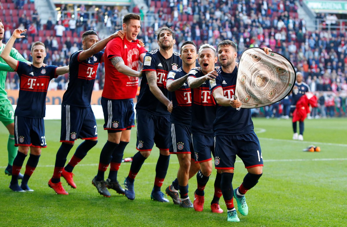 ونجح بايرن في تحويل تأخره بهدف أمام اوجسبورج إلى الفوز بأربعة أهداف ليحسم اللقب قبل خمس جولات من نهاية الموسم.