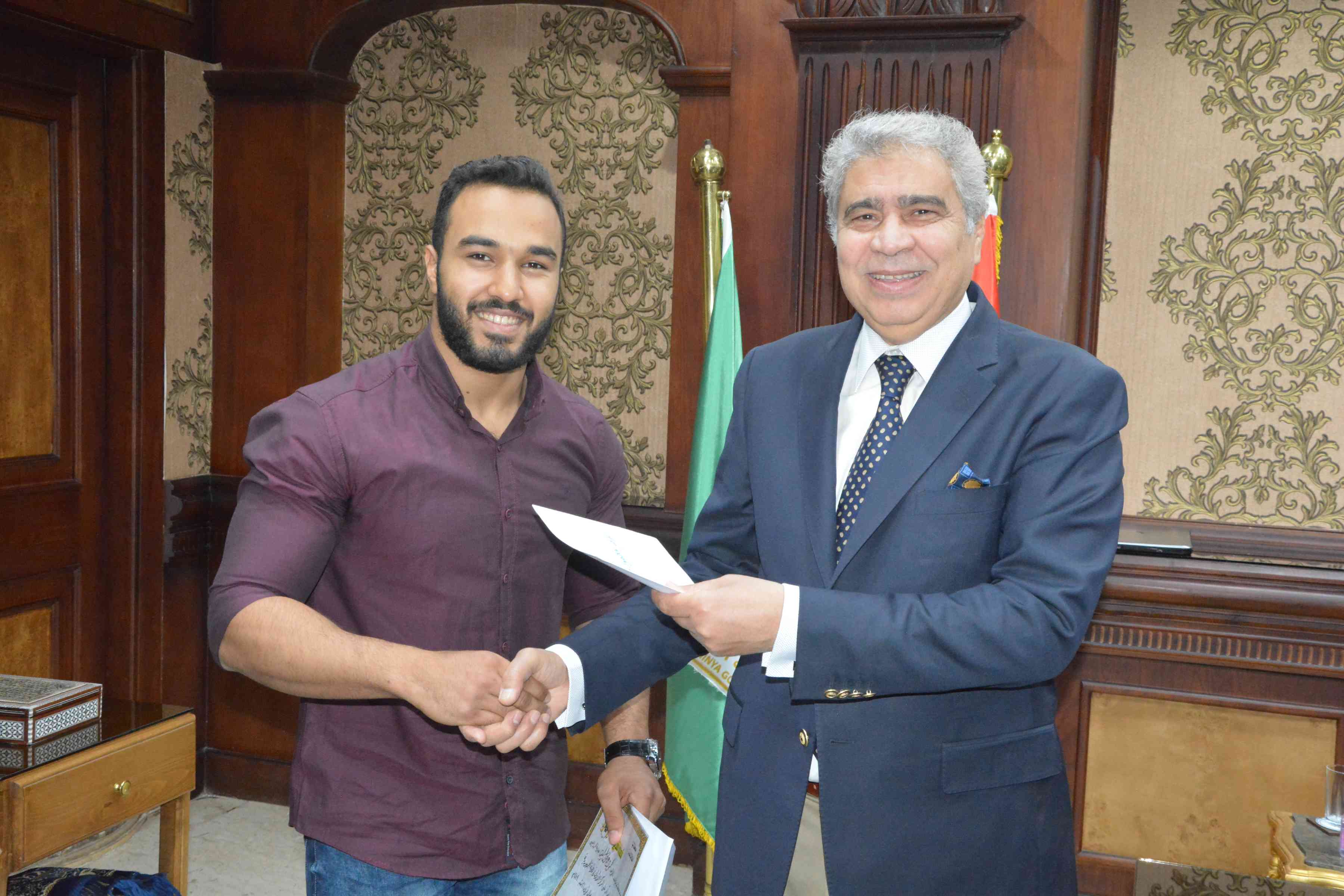 ومنح المحافظ الطالب شهادة تقدير ومكافأة مالية تقديرًا لجهده، معربًا عن خالص تمنياته باستمرار النجاح والتفوق من أجل تمثيل مصر في البطولات الدولية.